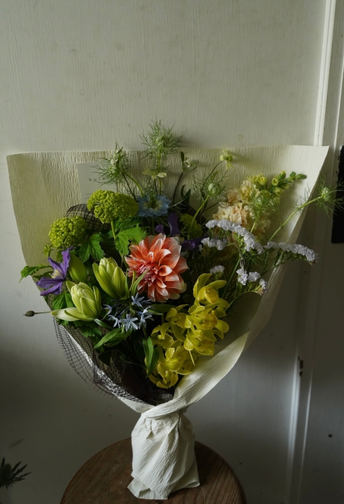 ラッピングは束ねるお花にあわせておまかせとなります